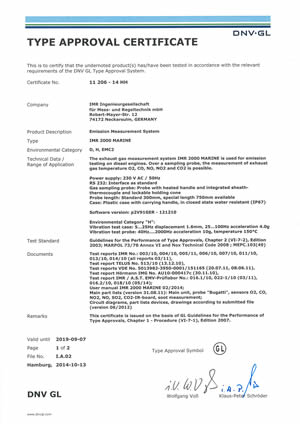 我們德國合作伙伴IMR公司制造的船用煙氣分析儀 IMR2000 Marine 最近獲得挪威DNV GL 認證。認證號為 Certificate No. 11 206 - 14 HH ,所依據最新標準為 MARPOL Annex VI and Nox Technical Code 2008.