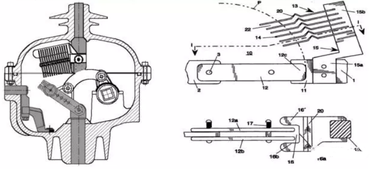 與動(dòng)觸頭相連的旋式翼片在腔內(nèi)旋轉(zhuǎn)時(shí)產(chǎn)生沿軸向吹出的氣體橫掃觸頭之間形成的電弧