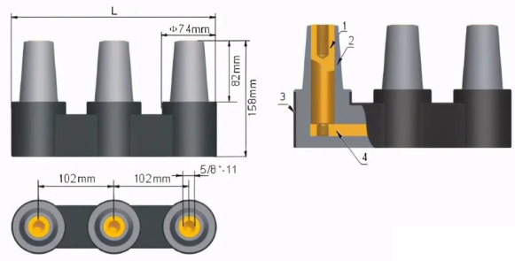 T型電纜接頭,用于電纜分支箱的主網分支系統600A,既可以連接600A母排接板M,也可以和T-II型電纜接頭600A側連接。或者直接用若干只T型電纜接頭組合連接,可靈活組合成多路多種型式的電纜分支。
