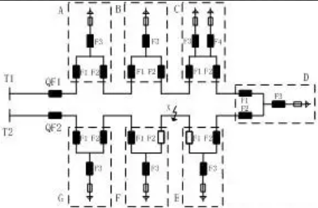 一般由3個間隔組成,包括兩個進出線間隔和變壓器間隔。進出線間隔主要用于故障線路的隔離,以及通過調整電源方向來恢復正常供電。變壓器間隔則通過組合電器來對變壓器內部短路故障進行快速切除。
