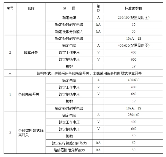 2.3.11在運用中可以溝通的具有相同額定值和結構的組件,應具有溝通性。3標準技術參數技術參數特性表是對收購設備的根底技術參數要求,供貨方應對技術參數特性表中標準參數值進行呼應。
