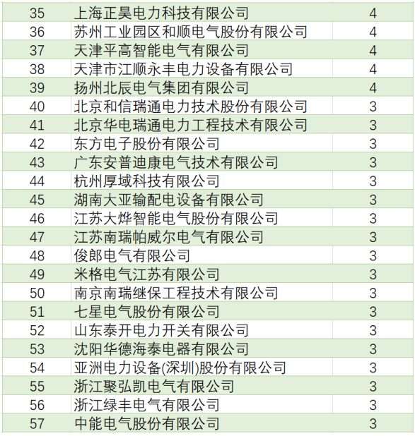表4國網環(huán)網箱產品中標企業(yè)中標項目單位數(中標項目單位數超過3個部分)