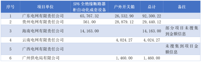 2020年度,南網范圍共有6個省級電力公司有安排戶外開關箱產品招標,通過各種招標方式安排了約8.0億元SF6全絕緣斷路器柜自動化成套設備需求和約6.1億元戶外開關箱需求。