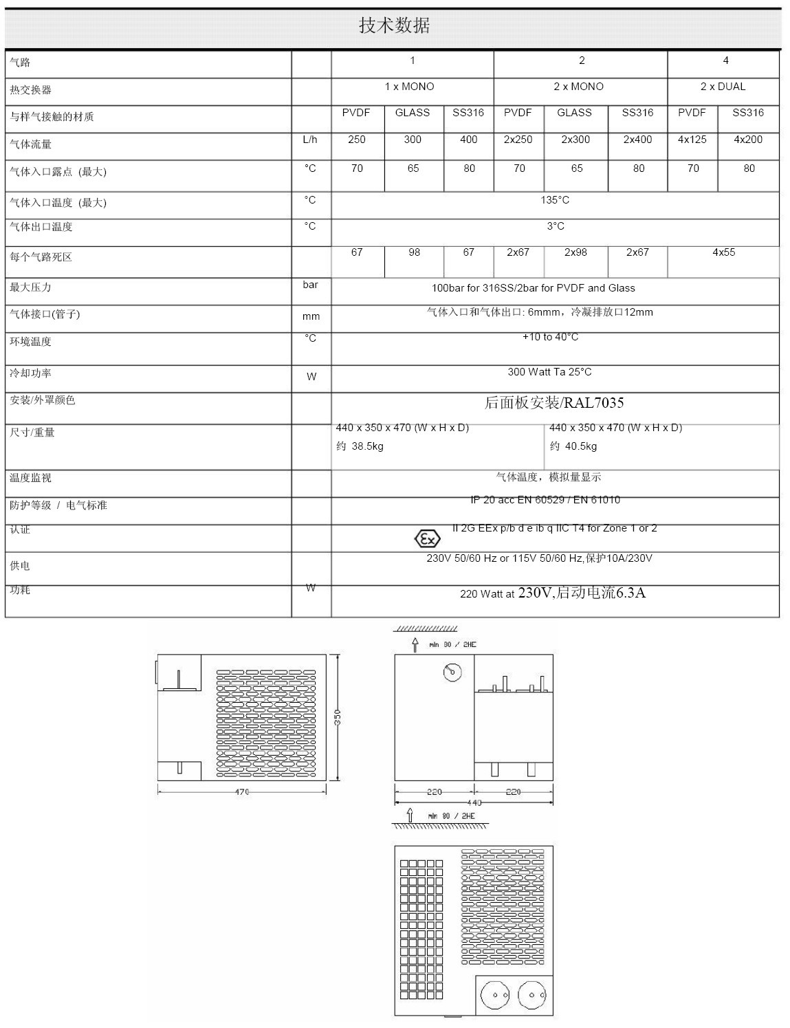 緊湊型和免維護防爆型冷凝器JCT-EX主要部件是高性能的熱交換器和精制的壓縮機,用以調(diào)節(jié)冷卻系統(tǒng)。唯一的壓力和溫度控制電源調(diào)節(jié)、較高的應(yīng)用以及較好的部件,都有利于長時間穩(wěn)定露點。熱交換器靈活的結(jié)構(gòu),允許高流量和保證樣氣和冷凝物適當(dāng)分離。JCT EX防爆型冷凝器提供穩(wěn)定可靠的技術(shù),耐腐蝕。可用于危險區(qū)域如1區(qū) 或 2 區(qū),通過ATEX認(rèn)證。