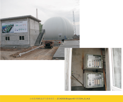 目前,該項目年處理雞糞約18萬噸、污水約12萬噸,年產生沼氣1095萬立方米、項目發電機組裝機容量為 3MW、年可發電2190萬kWh,固態有機肥年產量達到1.3萬噸,液態有機肥年產量達到23.7萬噸。該項目采用我們兩套ADOS Biogas 401,監測過程中的CH4,O2,H2S。